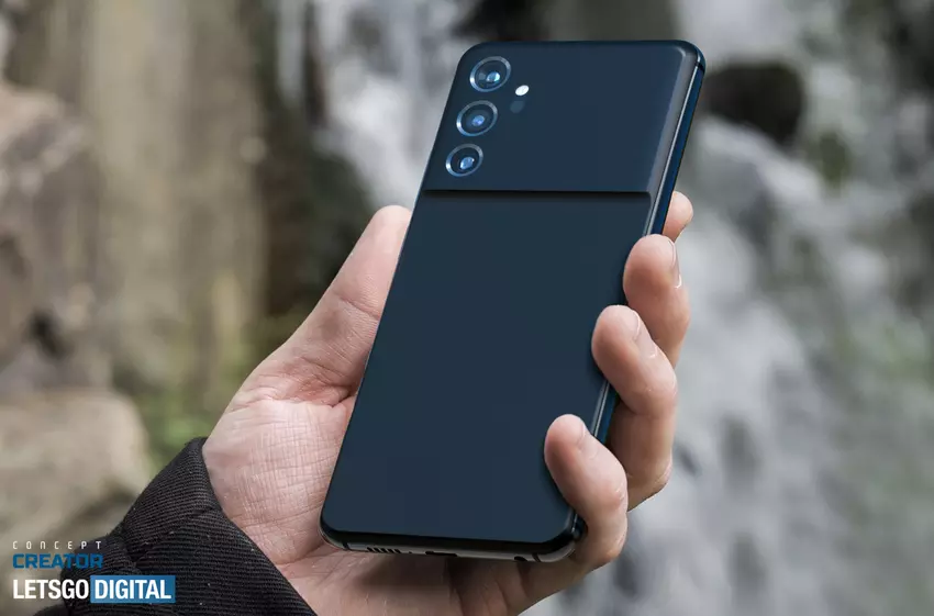 Das Gerät wird ein Display mit einem Loch in der linken Ecke für die Frontkamera und eine dreifache Hauptkamera haben. Die Module und der LED-Blitz werden auf einer Leiste installiert, die fast die gesamte Breite des oberen Teils des Geräts einnimmt.