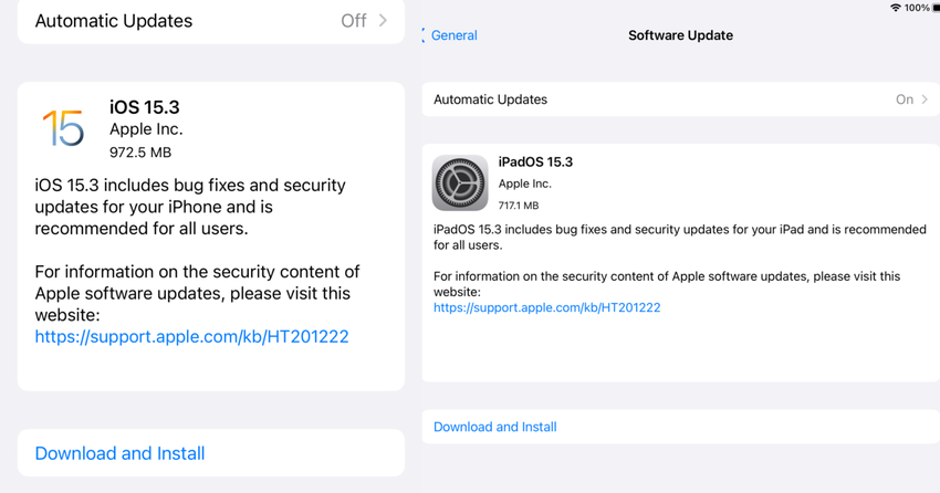 Denken Sie daran, dass iOS 15.3 für alle iPhones ab iPhone 6s geeignet ist und iPadOS 15.3 für alle iPads ab iPad Air 2, iPad geeignet ist