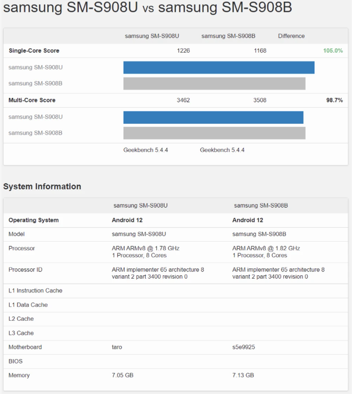 Phone Arena hat die Testergebnisse von zwei Modifikationen des Samsung Galaxy S22 Ultra in der Software Geekbench 5 veröffentlicht.Geräte mit den Modellnummern SM-S908U und SM-S908B sind mit Snapdragon 8 Gen1- bzw. Exynos 2200-Chipsätzen ausgestattet.