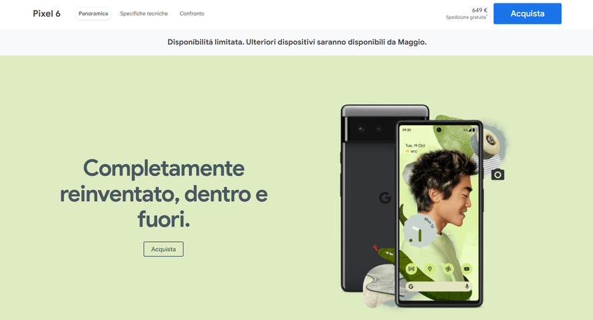 Der amerikanische Hersteller veröffentlichte die Geräte in aller Stille in Spanien und Italien. Die erste Charge von Geräten ist in begrenzten Mengen und nur in schwarzer Farbe erhältlich Nur schwarz . Die zweite Charge von Geräten soll im Mai erscheinen. Pixel 6 kostet 128 GB 649 € und das Pixel 6 Pro mit dem gleichen Speicher 899 €.