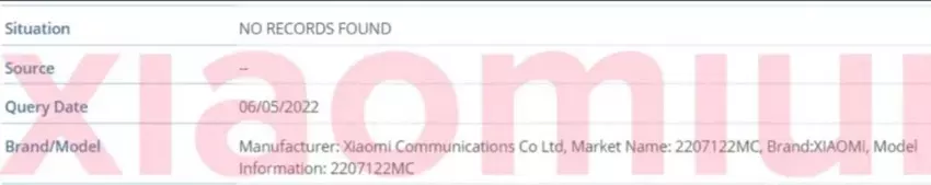 Erwähnungen des neuen Modells wurden in Mi Code gefunden. Xiaomiui entdeckte zuerst die Modellnummer des Telefons – 2207122MC – in der IMEI-Datenbank. Das Gerät trägt den Codenamen „dauimer“.