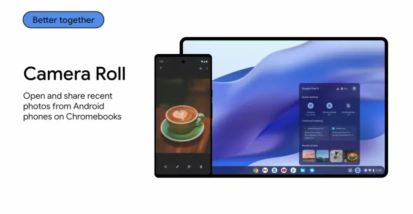 Als nächstes wird Camera Roll endlich in Chrome OS erscheinen. Camera Roll ist eine großartige Funktion, mit der Ihre neuesten Fotos, die auf Smartphones aufgenommen wurden, im Phone Hub-Bereich Ihres Chromebooks angezeigt werden. Von dort aus können Sie Ihre neuesten Fotos einfach per Drag-and-Play über Chrome OS überall hin mitnehmen.