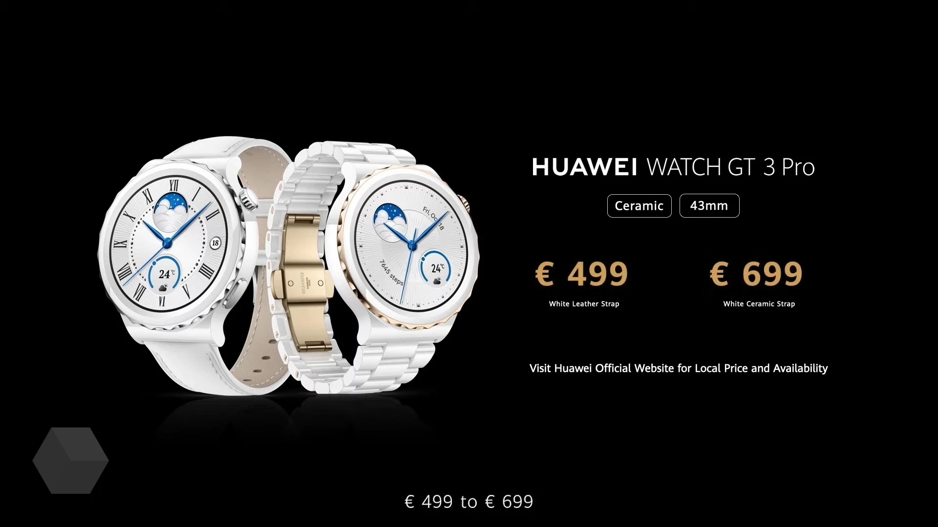 Die teuerste Neuheit ist die Smartwatch Huawei Watch GT 3 Pro in einer Modifikation mit Keramikgehäuse und gleichem Armband. Die Uhr kostet 699 €. Die Lederbandoption erspart Ihnen 200 €. Die Titan-Version wird in drei Varianten angeboten: mit einem Silikonband für 369 Euro, mit Leder 389 Euro und mit Titan 499 Euro.