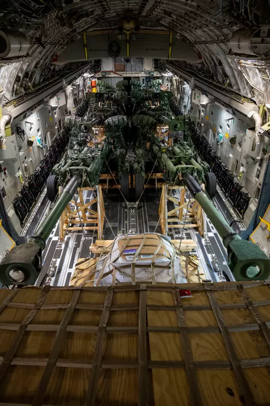 „Die Piloten stellen den Transport von 155-mm-M777-Schlepphaubitzen als Teil der US-Hilfe bereit, um die Sicherheit der Ukraine zu gewährleisten“, sagte das US-Verteidigungsministerium in einer Erklärung.