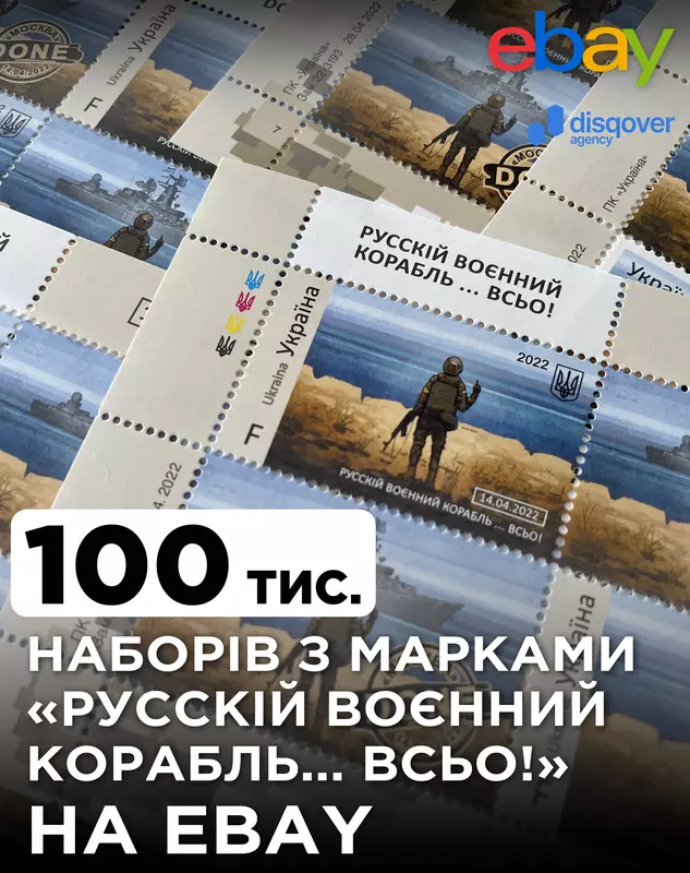 Ukrposhta gibt bekannt, dass die kürzlich herausgegebene Briefmarke "Russisches Militärschiff ... ALLES!" über den versunkenen Kreuzer "Moskau" wird bei eBay verkauft.