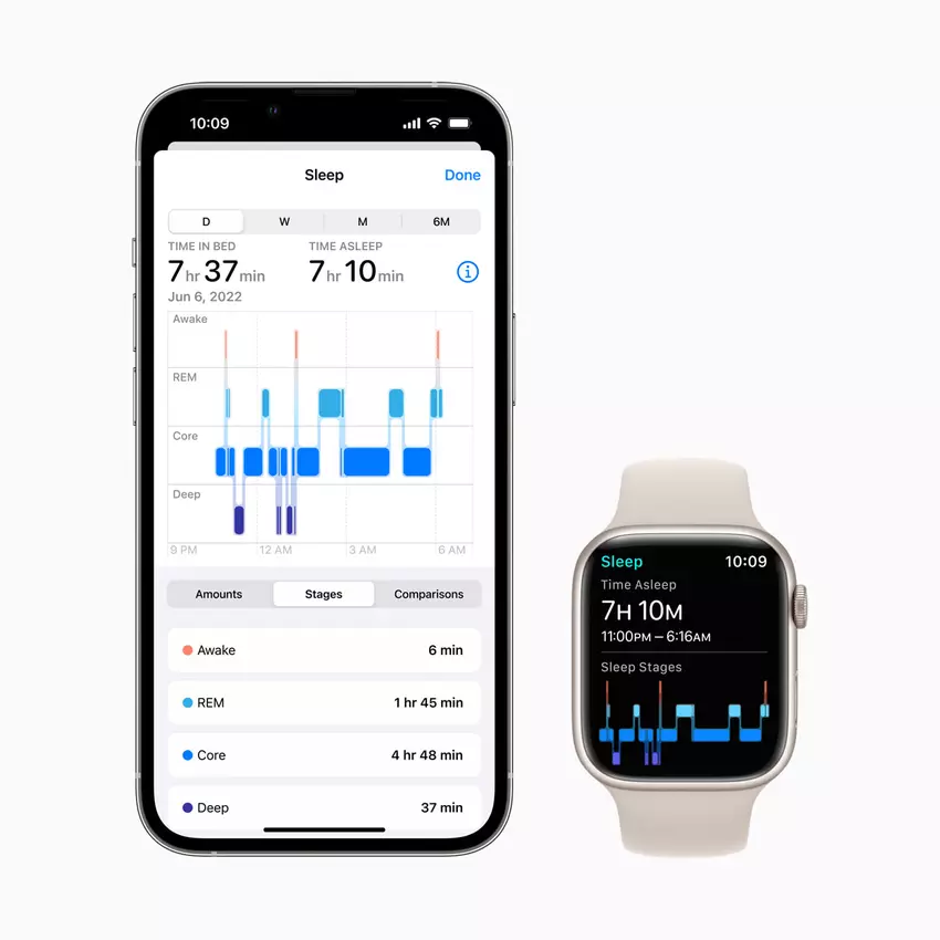 Apple hat auch die Schlafüberwachungsmodi aktualisiert. Sie wurden informativer. Nutzer können beispielsweise Schlafphasen, deren Dauer und andere nützliche Informationen einsehen.