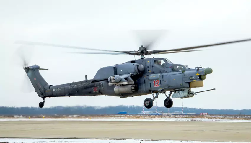 Denken Sie daran, dass der Mi-28N eine modifizierte Version des Mi-28-Hubschraubers ist. Der Transporter ist mit zwei TV3-117VMA-Motoren ausgestattet und hat ein maximales Startgewicht von 11,5 Tonnen, die Kampflast beträgt bis zu 1605 kg. Der Hubschrauber kann Geschwindigkeiten von bis zu 282 km/h erreichen (Reiseflug 260 km/h). Flugreichweite mit maximalem Startgewicht - 460 km. An Bord befinden sich eine 30-mm-Kanone, ein Panzerabwehr-Raketensystem und ungelenkte Raketenwaffen.