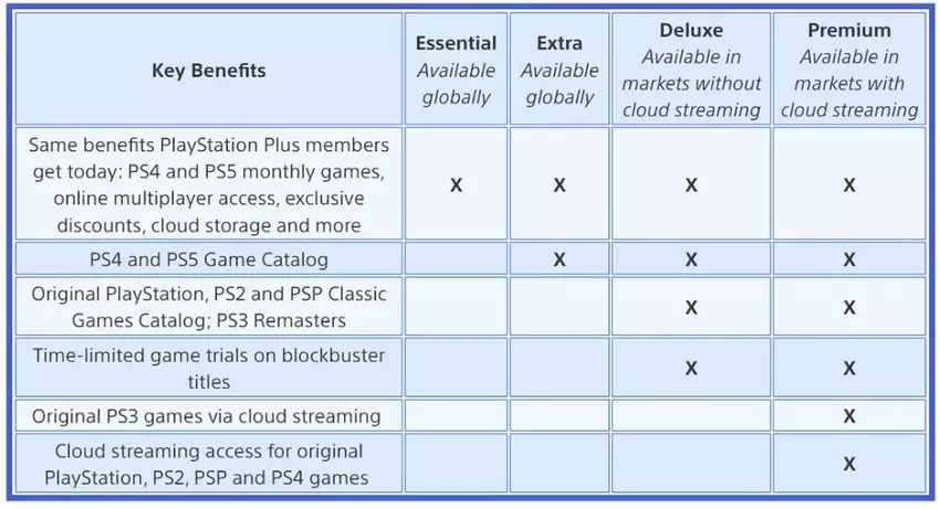 „Wir haben PlayStation Plus und PlayStation Now in einem brandneuen PlayStation Plus-Mitgliedschaftsdienst zusammengeführt, der Kunden in drei Mitgliedschaftsplänen weltweit mehr Auswahl und Mehrwert bietet: Essential, Extra und Premium (Deluxe in Nicht-Streaming-Märkten). Unser Der Schwerpunkt liegt auf der Bereitstellung eines kuratierten und vielfältigen Spieleportfolios mit Hunderten von hochwertigen Titeln, aus denen Sie wählen können, wenn Sie Extra oder Premium (Deluxe) abonnieren."