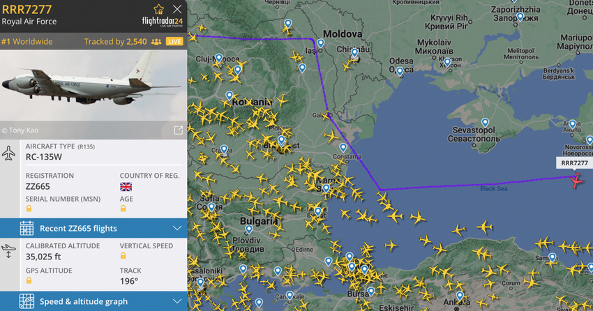 Das NATO-Flugzeug Boeing RC-135W flog zum Schwarzen Meer, um zu sehen, wie das russische Schiff sinkt