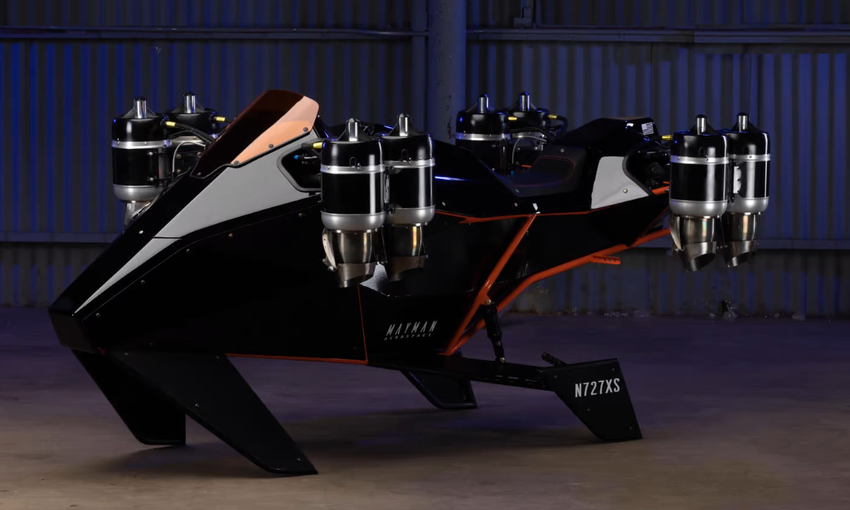 Gesellschaft Mayman Aerospace präsentierte einen Prototyp eines fliegenden Motorrads namens P2 Raser mit senkrechtem Start und hoher Geschwindigkeit.