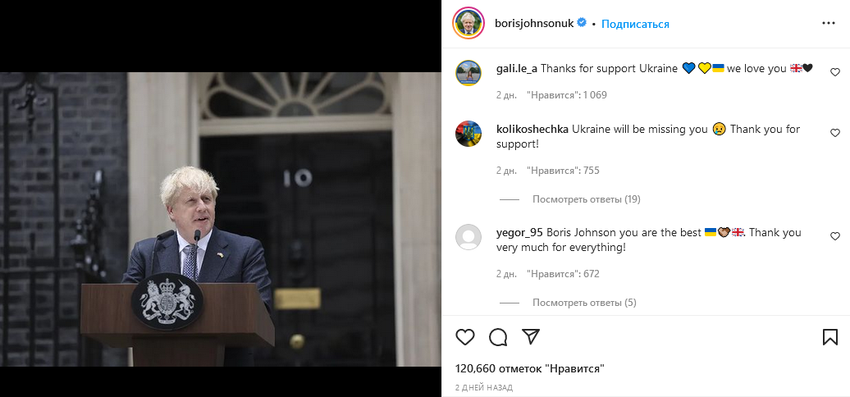 Darüber hinaus hinterlassen Ukrainer Worte der Dankbarkeit auf Johnsons Instagram-Seite .