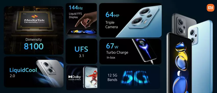 Redmi K50i 5G - Dimensity 8100, 144Hz LCD-Bildschirm, Android 12 und 67W Laden von $325