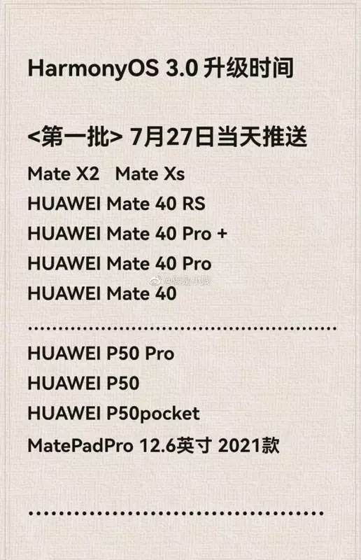 Kürzlich hat Huawei den Starttermin für die neue Version seines proprietären Betriebssystems HarmonyOS 3.0 bekannt gegeben - den 27. Juli. Jetzt ist eine inoffizielle Liste der Geräte aufgetaucht, die als erste das Update erhalten werden.