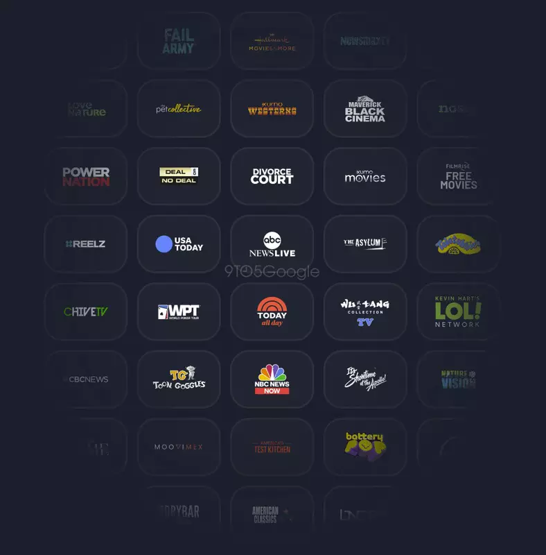Das klingt fantastisch. Im Gegensatz zu den aktuellen Google TV-Plattformen müssen Sie für Live-TV-Kanäle keine Software von Drittanbietern herunterladen. Der Kodex legt fest, dass es viele Live-Sendungen geben sollte, wie "Nachrichten, Sport, Filme und Shows". Darüber hinaus hat 9to5Google eine Grafik gefunden, die 34 der 50 aktiven Live-TV-Sender zeigt.