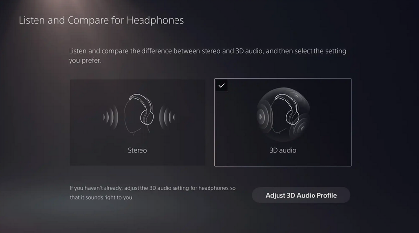 Sie können den Unterschied zwischen 3D- und Stereo-Sound auf demselben Bildschirm hören und vergleichen und dann den gewünschten Modus auswählen.