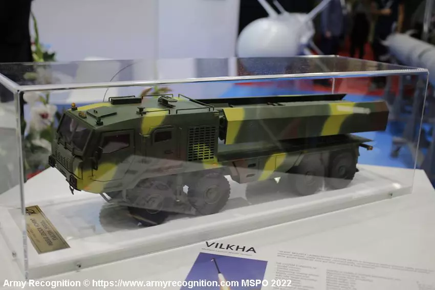 Auf der Messe MSPO 2022 in Polen hat die ukrainische Rüstungsindustrie ein Modell des Mehrfachraketenwerfersystems Volkha auf einem neuen Fahrgestell vorgestellt.