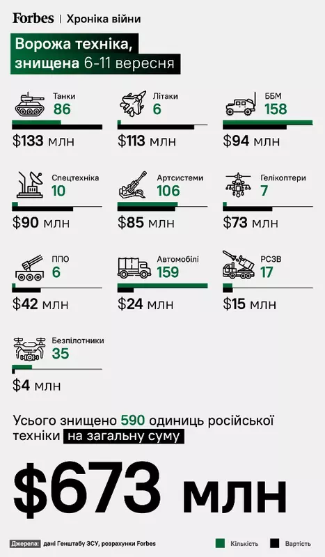 Die ukrainische Abteilung von Forbes hat auf der Grundlage von Informationen aus dem Generalstab und offenen Quellen die Ausgaben der Russen während des Gegenangriffs der AFU berechnet.