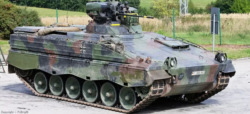 Der Marder ist ein deutscher Kettenschützenpanzer. Er ist seit den 1970er Jahren bei der Bundeswehr im Einsatz. Der BMP hat viele Modifikationen und bietet Platz für bis zu 10 Personen. Der Marder verfügt über eine geschlossene Wanne aus verschiedenen Panzerplatten, die bis zu 30 mm dick sind. Sie schützen die Vorderseite des BMP vor 20-mm- und 25-mm-Geschossen aus einer Entfernung von 200 m und die Seiten vor Schrapnell und 7,62-mm-Kleinwaffen. Die Bewaffnung besteht aus einer 20-mm-Maschinenkanone RH 202 und einem 7,62-mm-MG3-Maschinengewehr in Kombination mit dieser. Auf dem Dach des Truppenraums befindet sich außerdem ein Maschinengewehr.