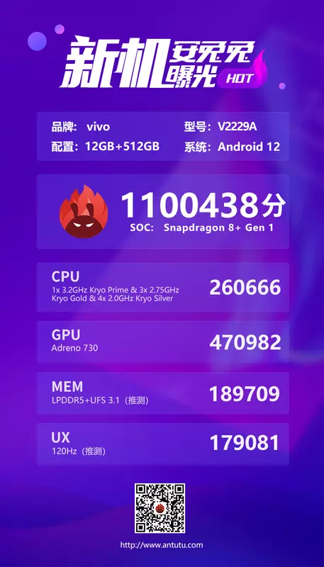Dem Bericht zufolge läuft die Neuheit unter der Modellnummer V2229A. Das Telefon wird mit 12 GB RAM ausgestattet sein und von einem Snapdragon 8+ Gen 1 Prozessor angetrieben werden. Zum Vergleich: Die reguläre Version des vivo X Fold hat einen Snapdragon 8 Gen 1 SoC. Im AnTuTu-Test erreicht das Smartphone mehr als 1.000.000 Punkte. Das heißt, die Leistung der neuen Geräte wird auf dem Niveau von Top-Gaming-Smartphones liegen.