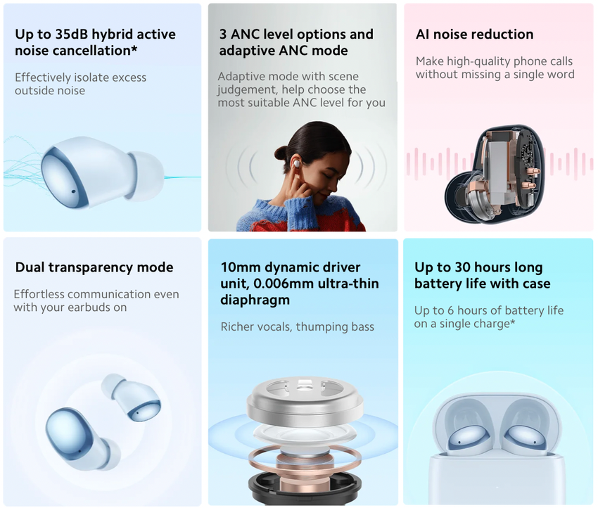 Die Neuheit verfügt ebenfalls über ein Vakuum-Design und ein aktives Geräuschunterdrückungssystem, das jedoch Geräusche bis zu 35 dB dämpfen kann. Die Redmi Buds 4 funktionieren über Bluetooth 5.2. Das Gerät verfügt außerdem über 10-mm-Treiber, IP54-Schutz, Transparenzmodus und eine Akkulaufzeit von bis zu 6 Stunden. Mit einer Ladehülle erhöht sich diese Zeit auf 30 Stunden. Geladen wird es über den USB-C-Anschluss.