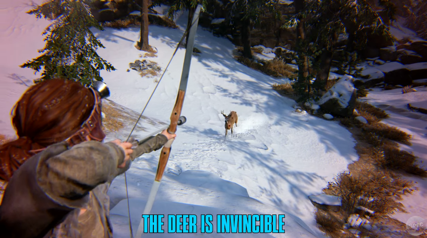 Der Autor hat Dutzende von explosiven Pfeilen verwendet, um dies zu testen, aber wer hätte das gedacht, das Reh ist unsterblich und sein Tod tritt erst im Schlüsselmoment des Spiels ein.