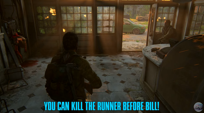 Sobald Sie in Pittsburgh ankommen, wird Ellie von Plünderern gefangen genommen und Sie müssen das Skript aktivieren, um sie zu retten, aber wenn Sie versuchen, es zu umgehen, indem Sie z. B. einen Ziegelstein auf den Feind werfen, wird nichts passieren.