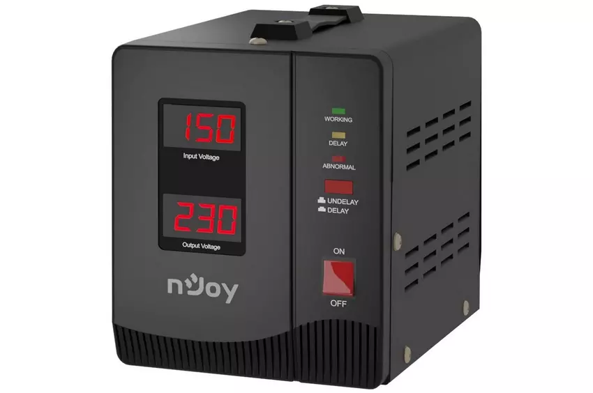 Es gibt zwei Schukosteckdosen und eine Anzeige, die über die Eingangs- und Ausgangsspannung informiert. Durch den progressiven Ringkerntransformator ist der Stabilisator im Vergleich zu den alten Panzer- und Stabtransformatoren relativ kompakt und leise. Die Leistung von 2000 Volt-Ampere oder 1200 Watt reicht aus, um fast alle elektronischen Geräte im Haus zu sichern, außer der Heizung. Die nJoy Alvis-Produktpalette umfasst jedoch auch Stabilisatoren bis zu 5.000 VA oder 3 Kilowatt.