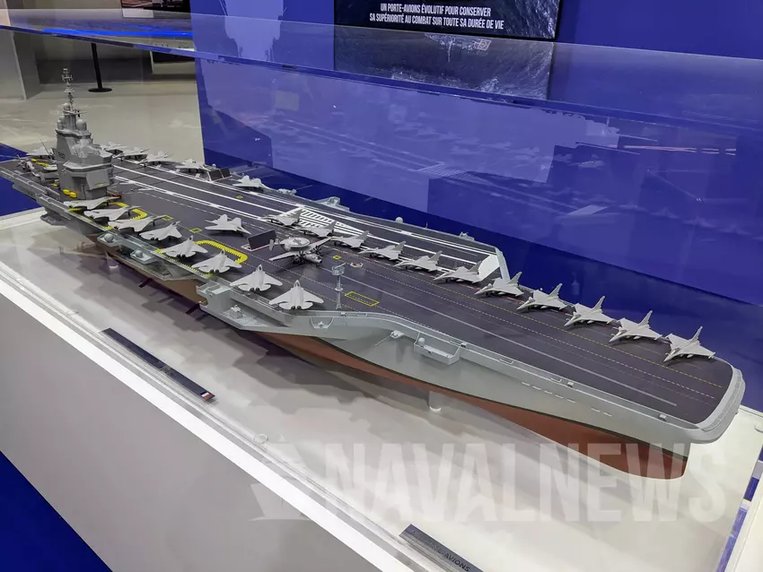 Das französische Unternehmen enthüllte ein Modell des Flugzeugträgers. Die Kampfversion wird mit einem Kraftwerk mit zwei Kernreaktoren ausgestattet sein. Nach Angaben des Herstellers kann die PANG zehn Jahre lang betrieben werden, ohne dass Kernbrennstoff nachgeladen werden muss.
