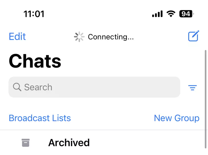 Beim Öffnen von WhatsApp versucht die App, sich mit dem Server zu verbinden. Aufgrund des Fehlers werden Chats nicht geladen. Außerdem können Nutzer keine Nachrichten verschicken. Was genau passiert ist, ist unklar.