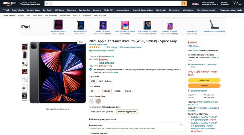Das letztjährige 12,9-Zoll-iPad Pro mit 128 GB Speicherplatz ist ab sofort bei Amazon für check price on amazon erhältlich ( check price on amazon ). Einen ähnlichen Preisnachlass gibt es auch für die Speicher-Modifikationen mit 256 GB, 512 GB und 1 TB.