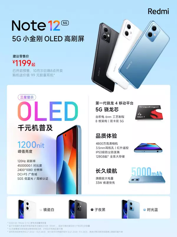 Das Redmi Note 12 wird zusammen mit den anderen neuen Produkten am 31. Oktober in den Gehäusefarben Schwarz, Weiß und Blau in den Handel kommen. Die Preise finden Sie unten.