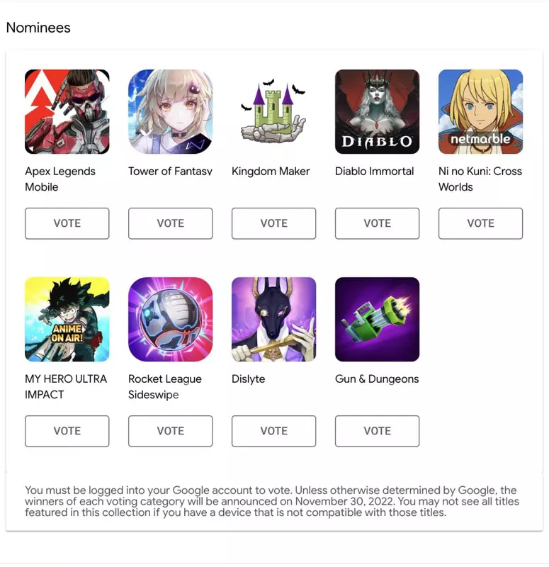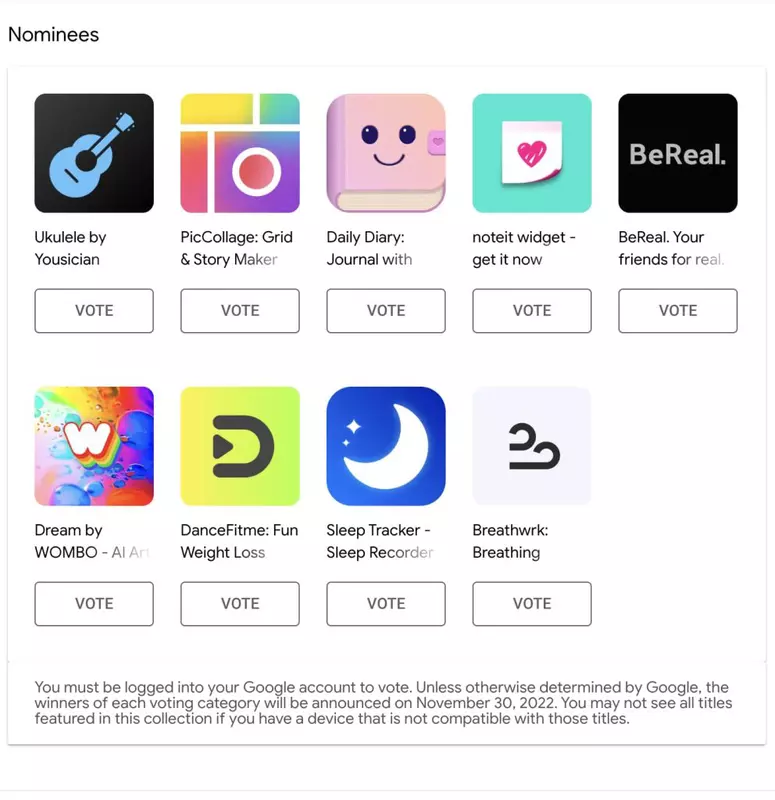 Google hat im Play Store die Abstimmung für das beste Spiel und die beste Android-App des Jahres 2022 gestartet.