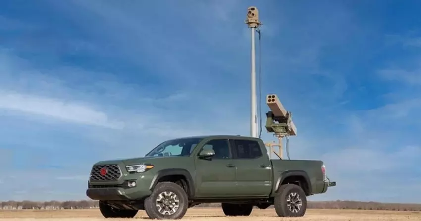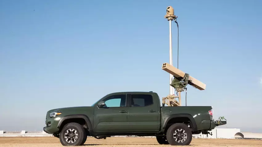 VAMPIRE ist ein Akronym für Vehicle-Agnostic Modular Palletized ISR Rocket Equipment. Es handelt sich um ein tragbares System zur Ausschaltung feindlicher Drohnen. Der Bausatz kann auf jedes Fahrzeug mit einem Laderaum montiert werden. Genauer gesagt an einem Pickup, wie auf dem Bild zu sehen.
