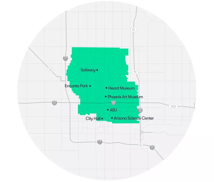 Vorerst ist der Waymo One Service geografisch begrenzt. Nur Bewohner der zentralen Bezirke der Hauptstadt von Arizona können die Dienste der Roboterautos nutzen. Aber jetzt ist es für jeden verfügbar, der die Waymo One App hat, nicht nur für Teilnehmer des Vorversuchsprogramms.