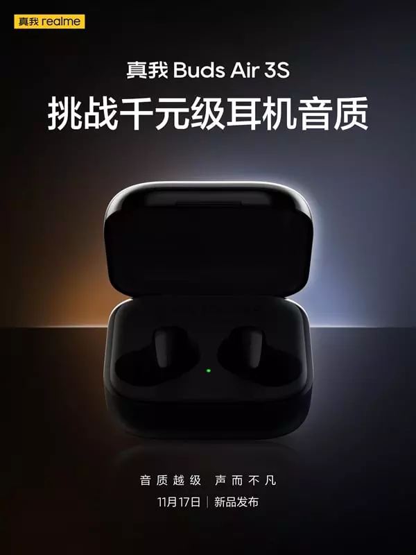 Laut dem offiziellen Teaser des Herstellers auf dem sozialen Netzwerk Weibo wird das Unternehmen an diesem Donnerstag die realme Buds Air 3S enthüllen. Die Kopfhörer werden ein Vakuum-Design mit "Flossen" und zwei Farben erhalten: schwarz und weiß.