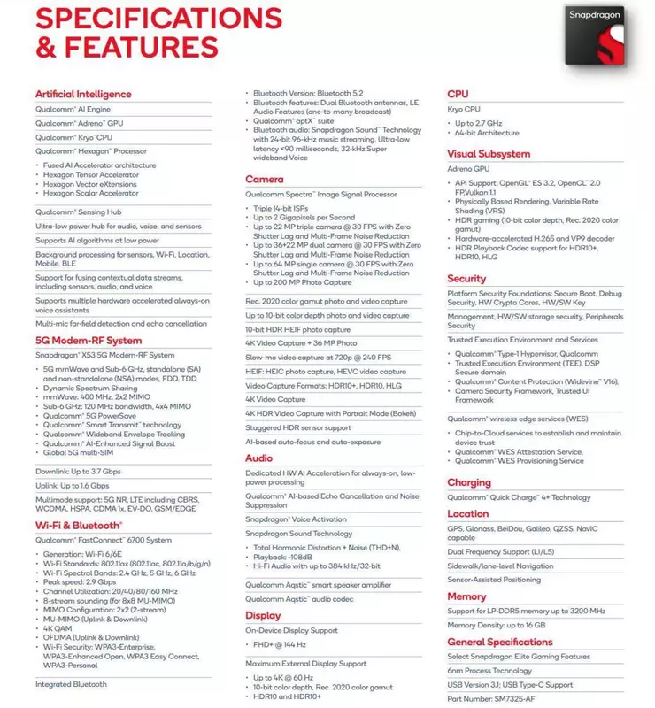 Die anderen Spezifikationen des Snapdragon 782G sind gleich geblieben. Der SoC unterstützt die Schnellladetechnologie Quick Charge 4+, Wi-Fi 6, Kameras mit bis zu 200 MP und ein Snapdragon X53 5G-Modem. Es kann in Sub-6GHz- und mmWave-Netzwerken arbeiten.
