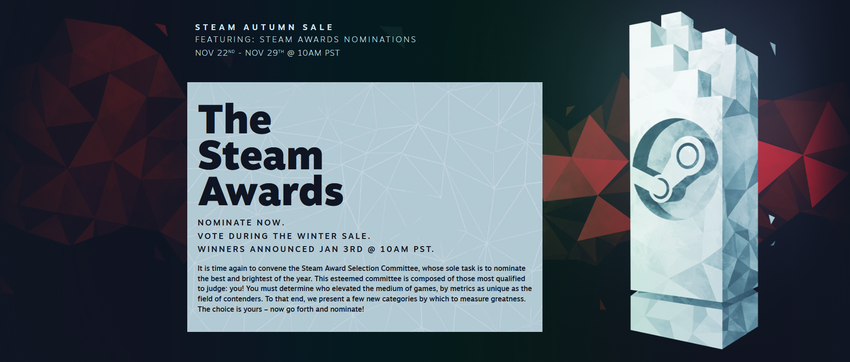 Steam setzt den Herbstverkauf bis zum 29. November fort und bietet außerdem die Möglichkeit, für die The Steam Awards abzustimmen, für die es 11 Nominierungen gibt