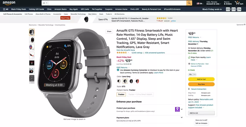 Der Black Friday Verkauf auf Amazon geht weiter. Jetzt können Sie die Amazfit GTS Smartwatch mit einem Rabatt kaufen.