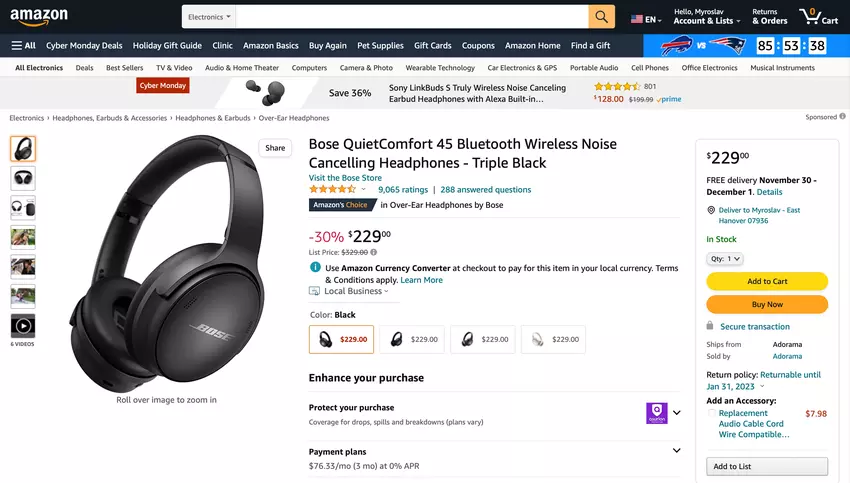 Auf Amazon hat ein Cyber Monday Sale begonnen. Sie können die kabellosen Kopfhörer der Spitzenklasse Bose QuietComfort 45 mit einem Rabatt kaufen.