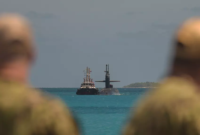 Die USA haben das Atom-U-Boot USS West Virginia, das 20 ballistische Trident II D5-Raketen mit Atomsprengköpfen tragen kann, auf die Insel Diego Garcia im Indischen Ozean entsandt.