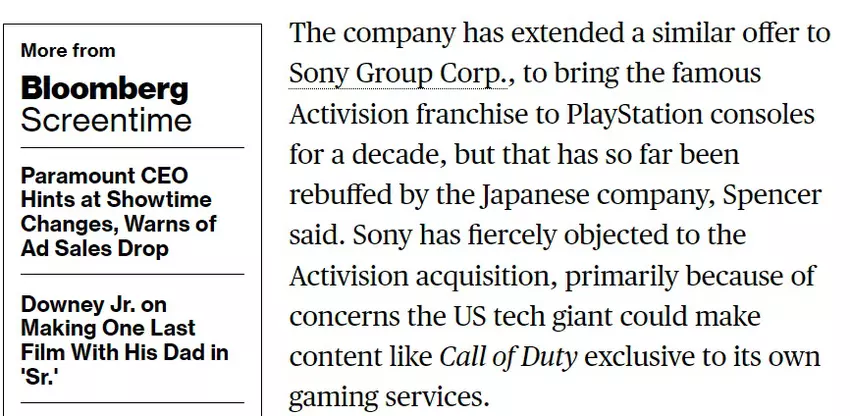 Phil Spencer gab der Nachrichtenagentur Bloomberg ein Interview, in dem er offiziell bestätigte, dass Sony ein Zehnjahresvertrag für die Veröffentlichung von Spielen der Call of Duty-Reihe auf der PlayStation angeboten wurde, aber das japanische Unternehmen hat den Vorschlag komplett ignoriert.