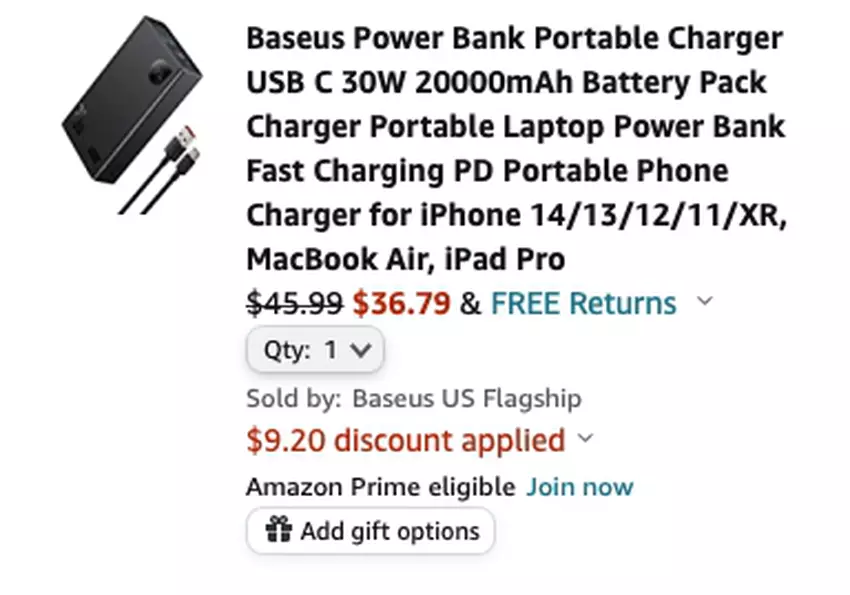 Sie können eine große Baseus Batterie mit einem Rabatt auf Amazon jetzt kaufen.
