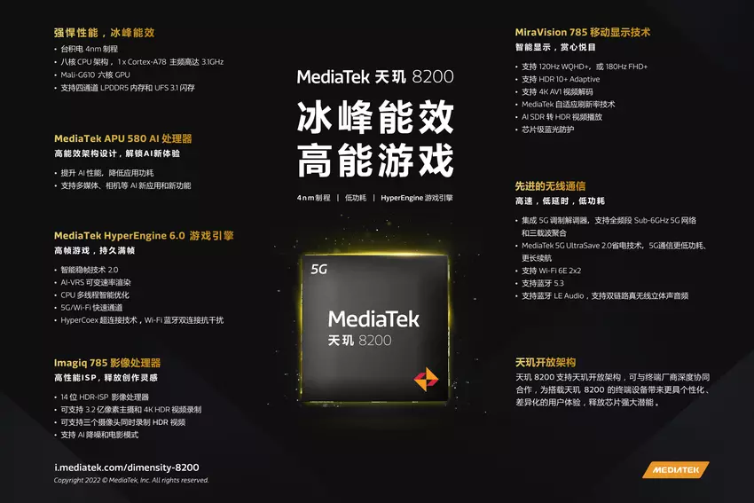 MediaTek stellt den Dimensity 8200-Prozessor mit Cortex-A78, Mali-G610, Wi-Fi 6E-Unterstützung, 320MP-Kameras und 180 Hz für Mittelklasse-Smartphones vor