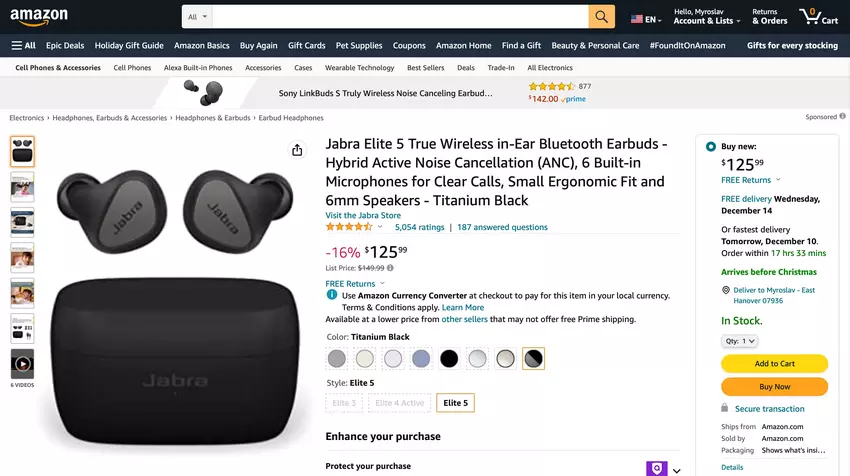 Jabra Elite 5 auf Amazon: TWS-Kopfhörer mit ANC, IP55-Schutz und einer Laufzeit von bis zu 28 Stunden mit einem Rabatt von 24 $