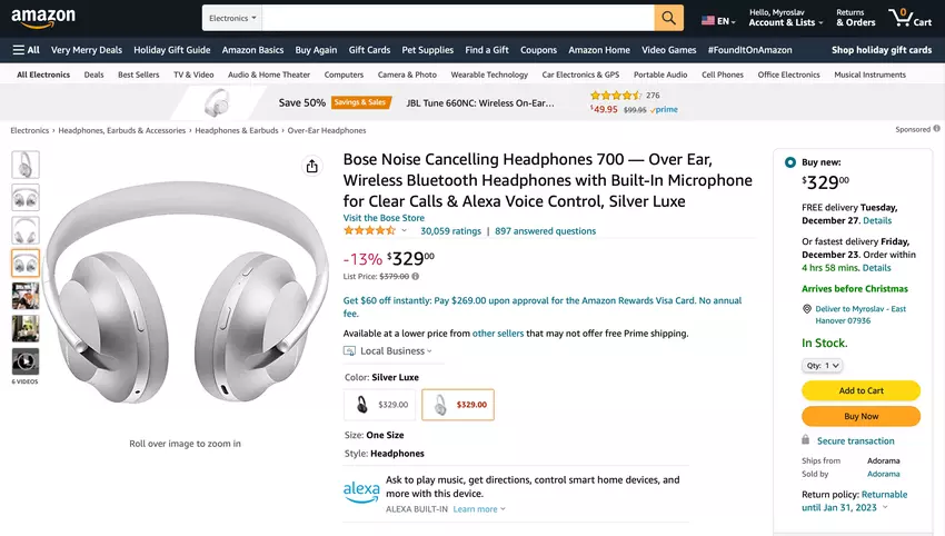$50 Rabatt: Bose Noise Cancelling Headphones 700 mit ANC bei Amazon zu einem Aktionspreis erhältlich