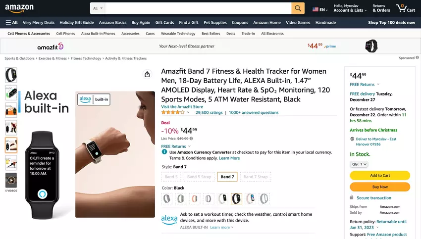Amazfit Band 7 auf Amazon: ein intelligentes Armband mit großem OLED-Display, Alexa-Unterstützung und bis zu 28 Tagen Akkulaufzeit für 44 Dollar
