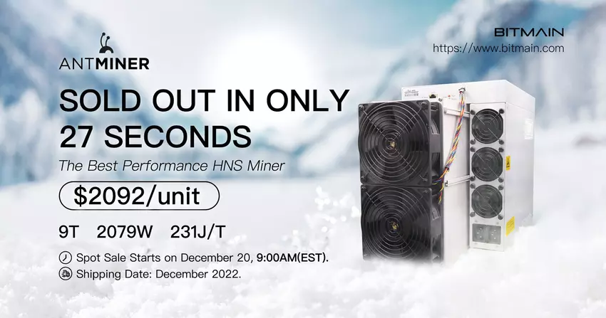 Der Preis für den Antminer HS3 lag bei 2092 Dollar. Das Unternehmen erwartete, alle Geräte zwischen dem 20. und 31. Dezember zu verkaufen. Allerdings waren alle ASICs innerhalb von 27 Sekunden nach dem Verkaufsstart ausverkauft.