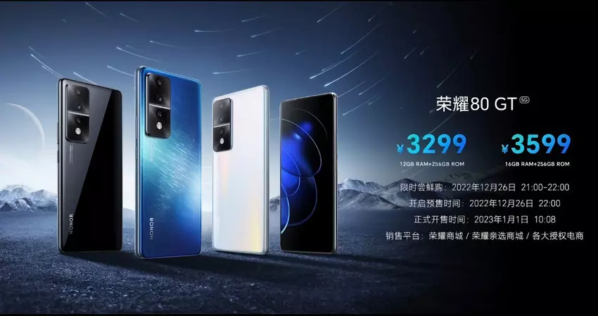 Honor 80 GT: Smartphone mit Snapdragon 8+ Gen 1 Chip, 120 Hz OLED-Bildschirm und 50 MP Sony IMX800 Kamera für 473 $
