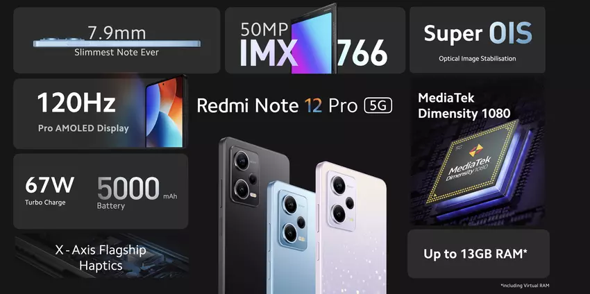 Redmi Note 12 Pro mit MediaTek Dimensity 1080 Chip, 50 MP Sony IMX766 Kamera und 67W Schnellladung außerhalb Chinas enthüllt