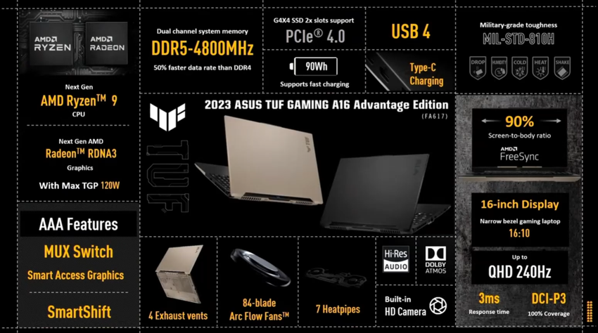 ASUS präsentiert ein Gaming-Notebook TUF Gaming A16 Advantage Edition mit Ryzen 7000 Prozessoren und Radeon RX 7000 Grafikkarten